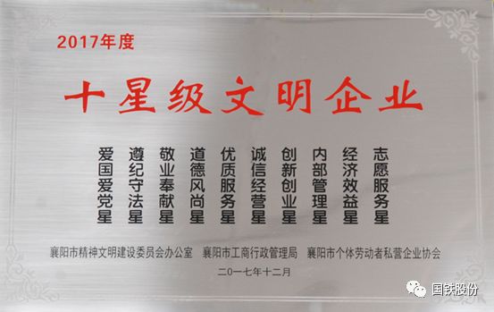 襄陽(yáng)國(guó)鐵榮獲2017年度“十星級(jí)文明企業(yè)”
