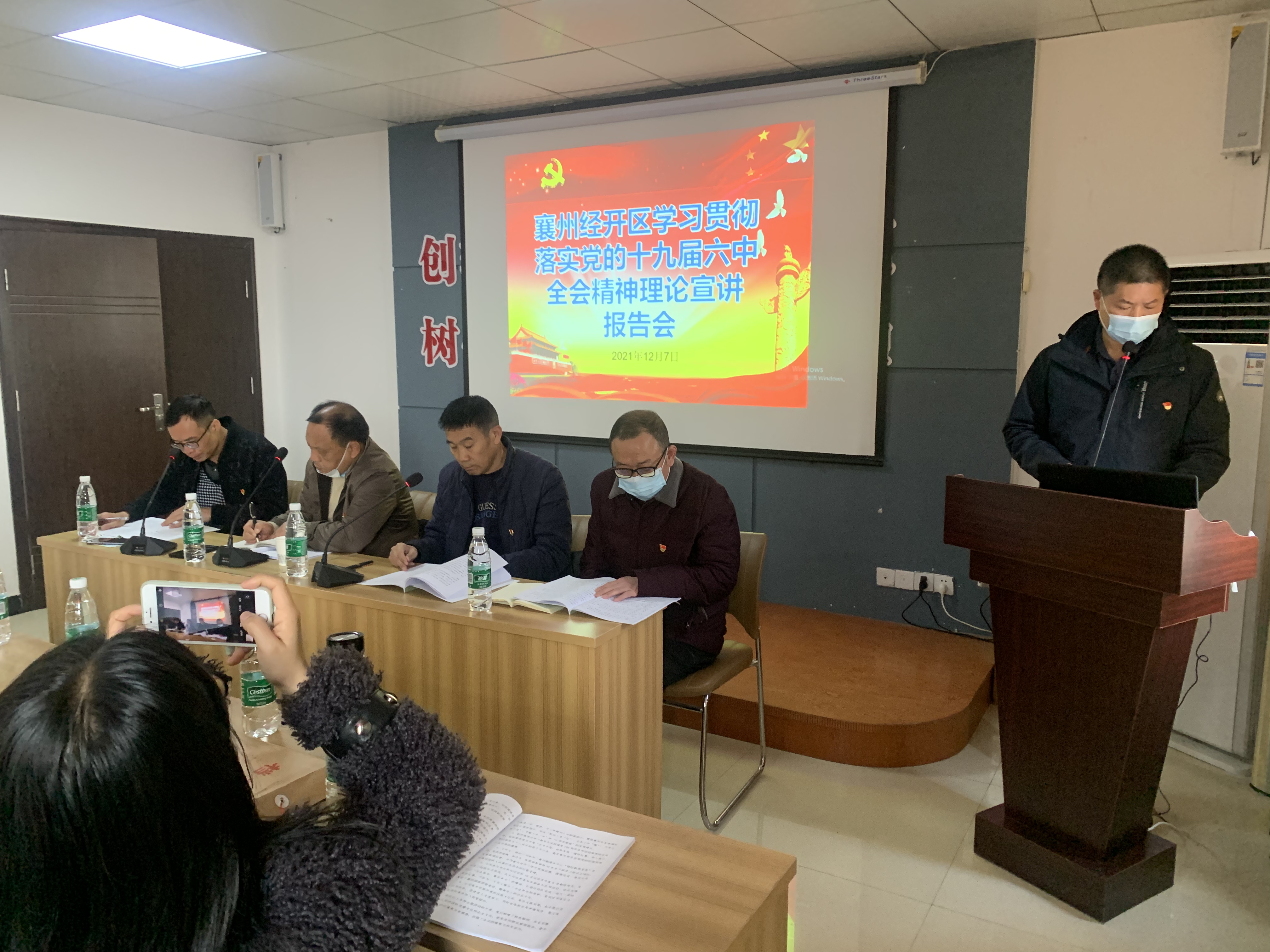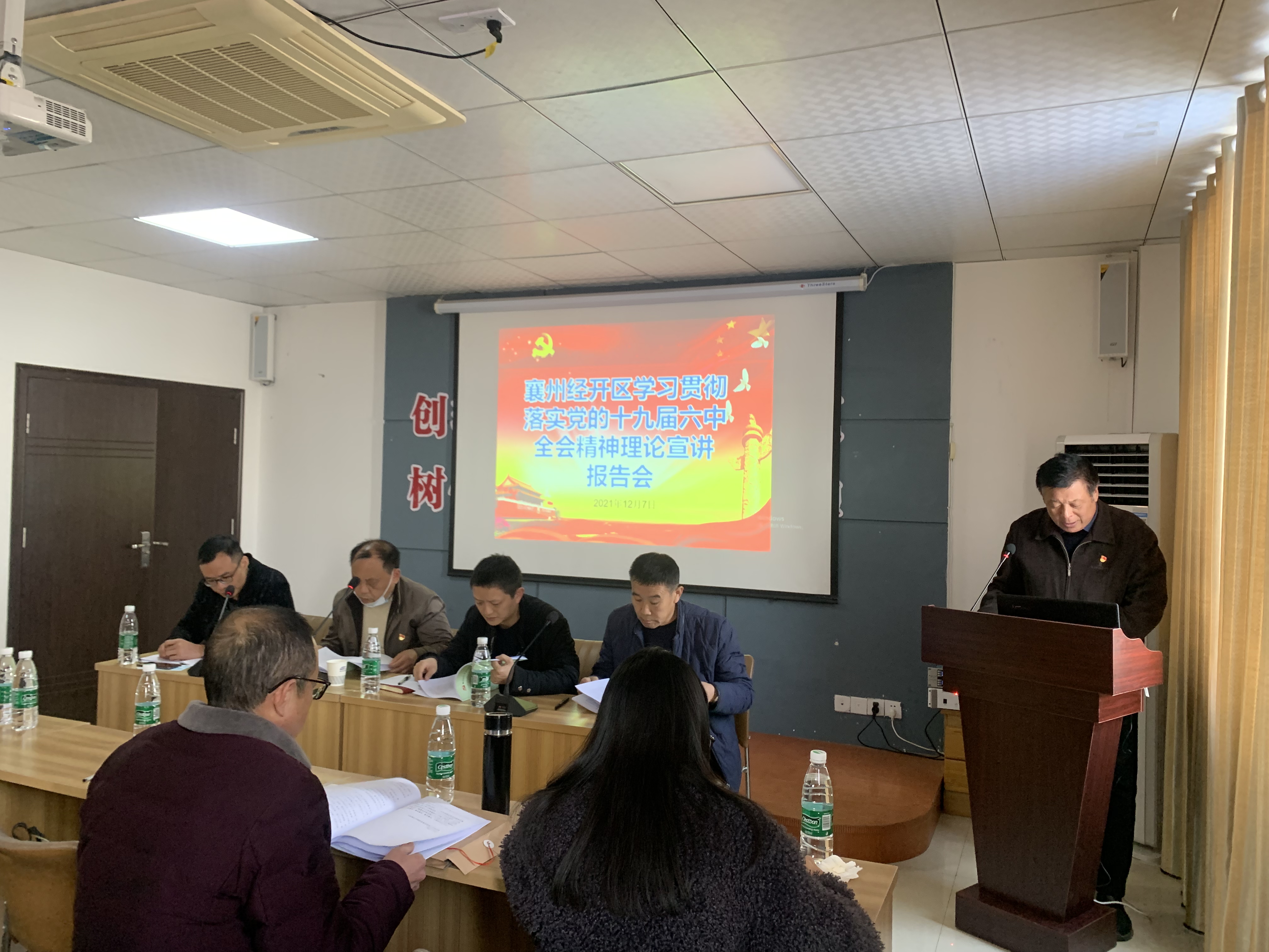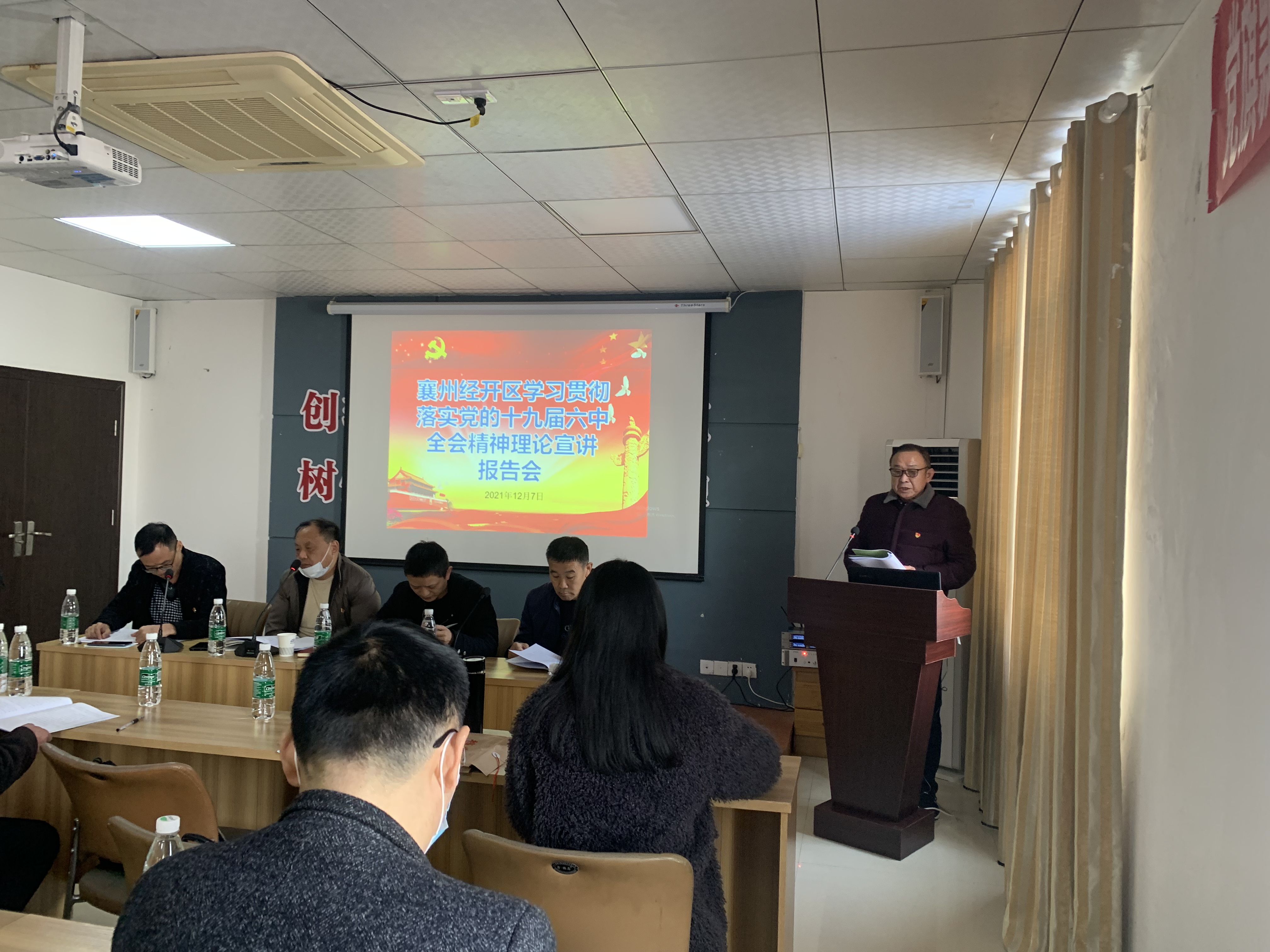 會議主要任務是認真學習黨的十九屆六中全會精神,總結2021年黨建工作成績,安排年末和2022年園區(qū)黨建工作。會議結束后,緊接著請襄州區(qū)委黨校知名講師王拓進老師講授黨課。